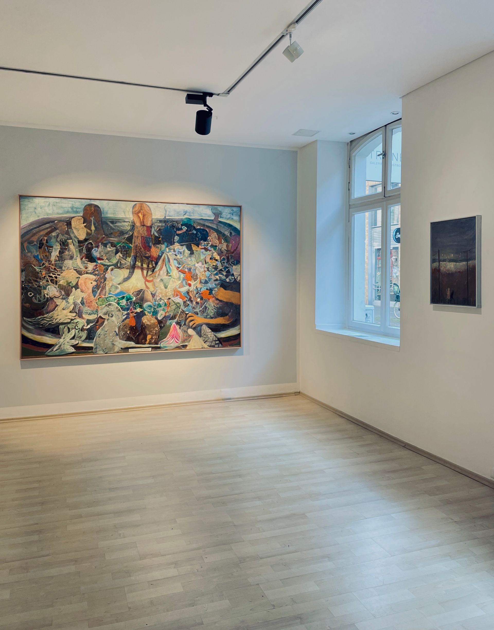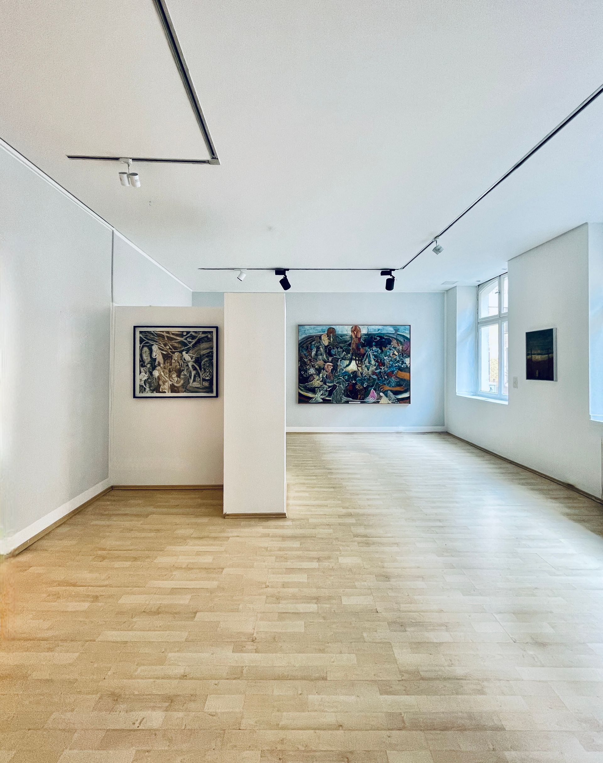Dominik Sartor kreiert in seinen analogen und digitalen Malereien fantasievolle Welten mit magischen Figuren. Der Künstler arbeitet häufig mehrere Jahre an seinen Bildern. Er malt seine Kompositionen mit verschiedenen Farbschichten, die er im Laufe der Zeit abschleift und neu bearbeitet. In einigen Gemälden sind sogar alte Farbfragmente auf die Oberfläche des Bildes collagiert. Die Dichte an Farbspuren im Detail fasziniert und unterstreicht den magischen Charakter der Bilder.