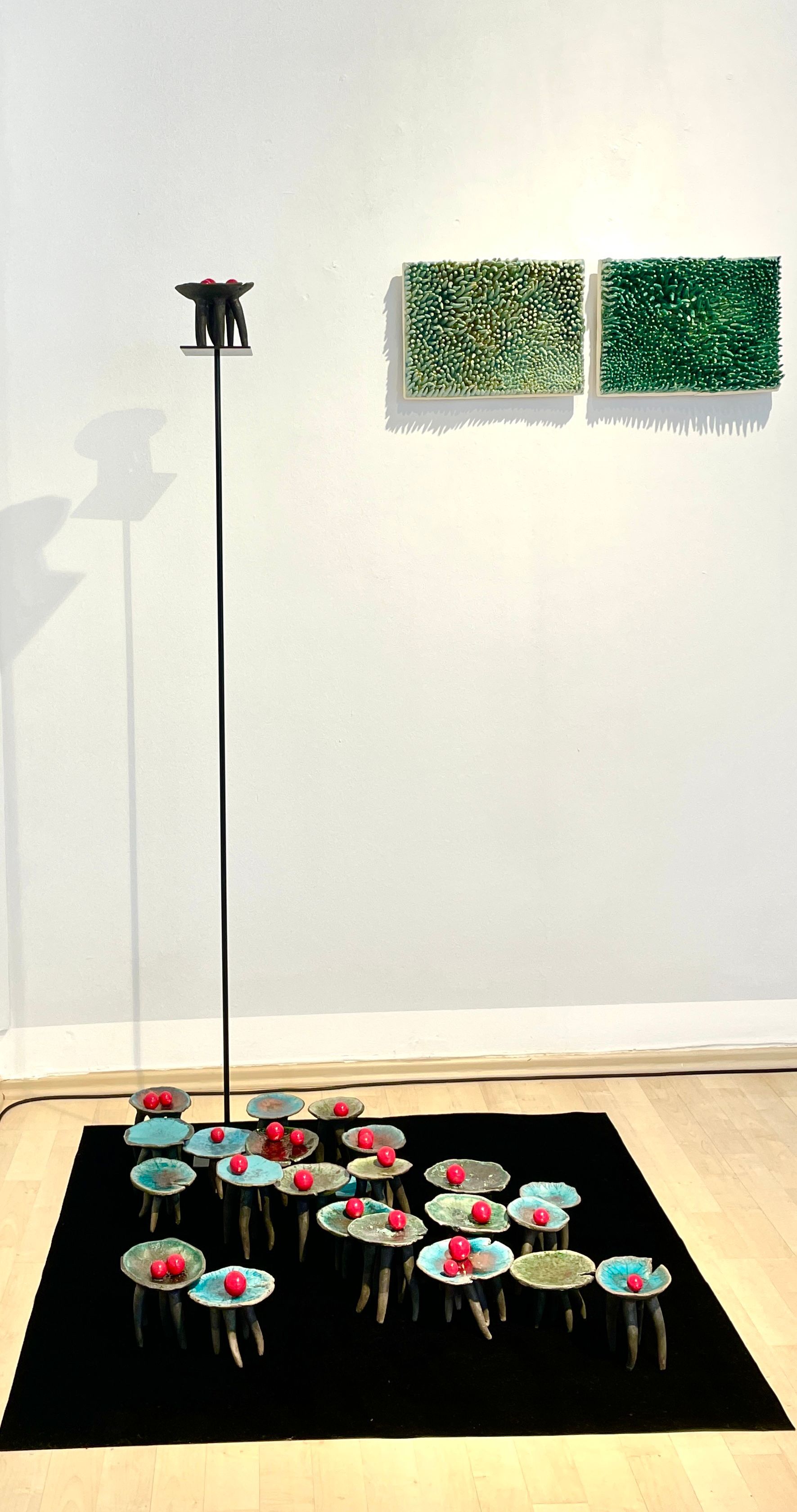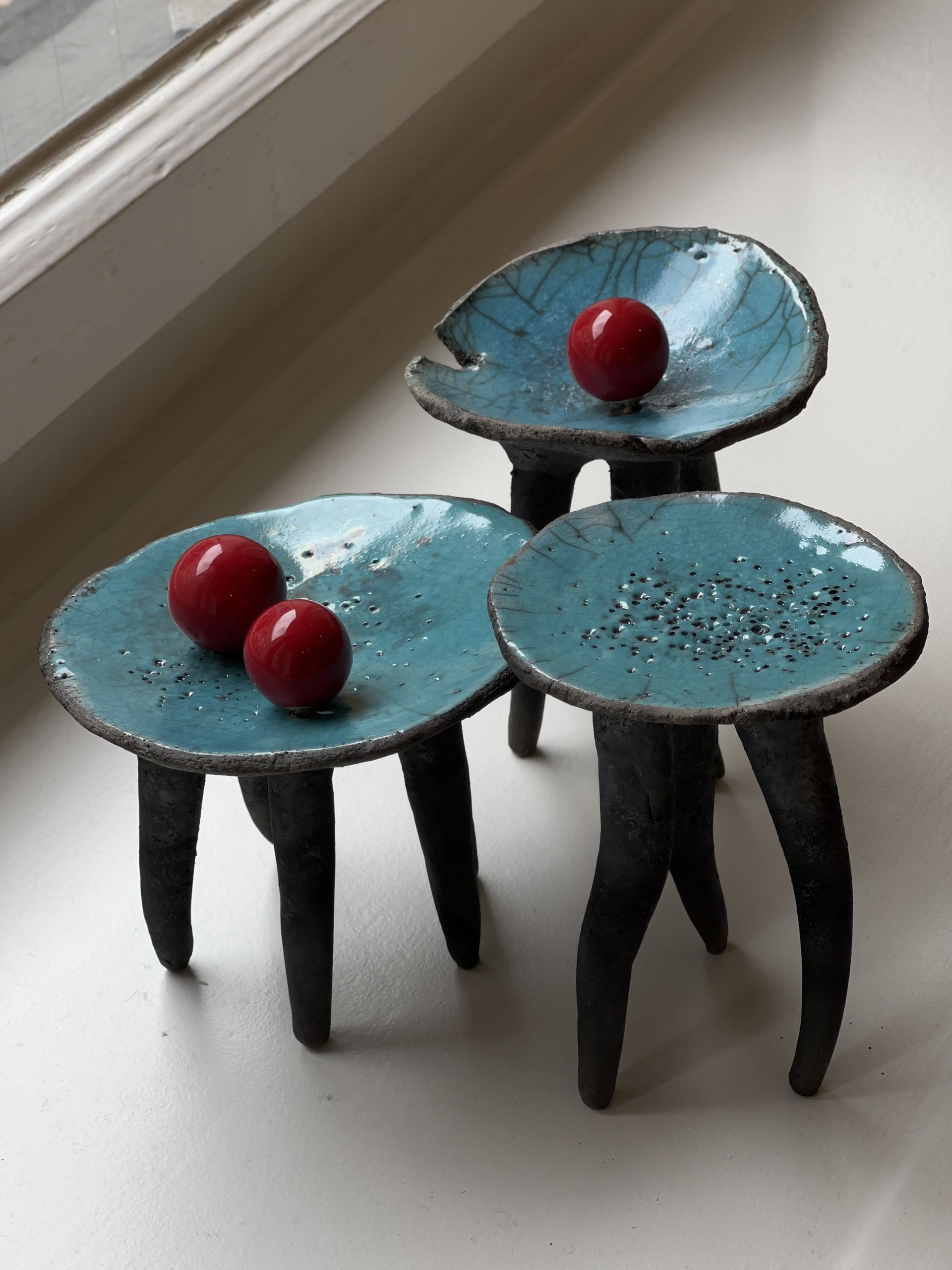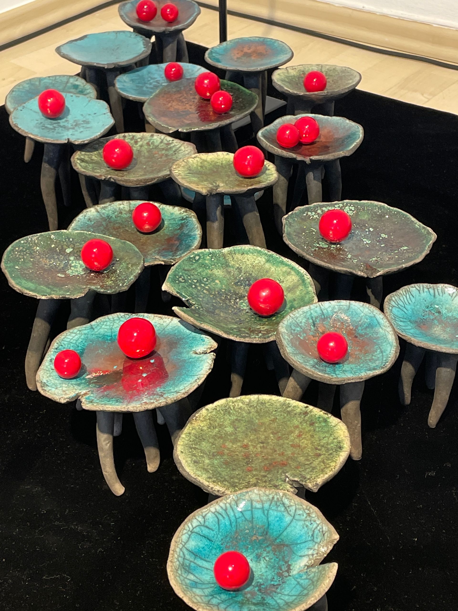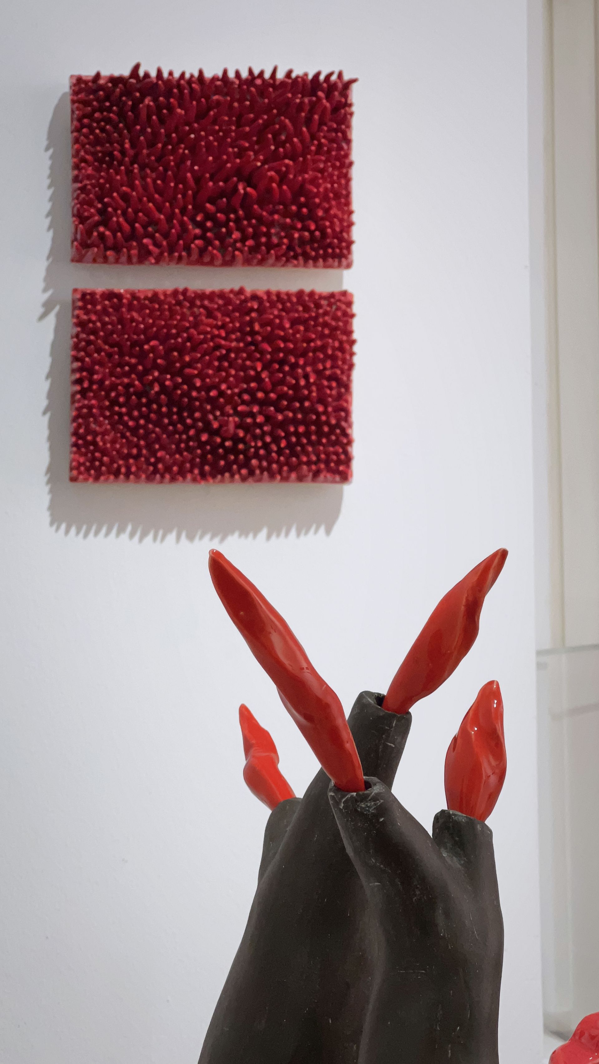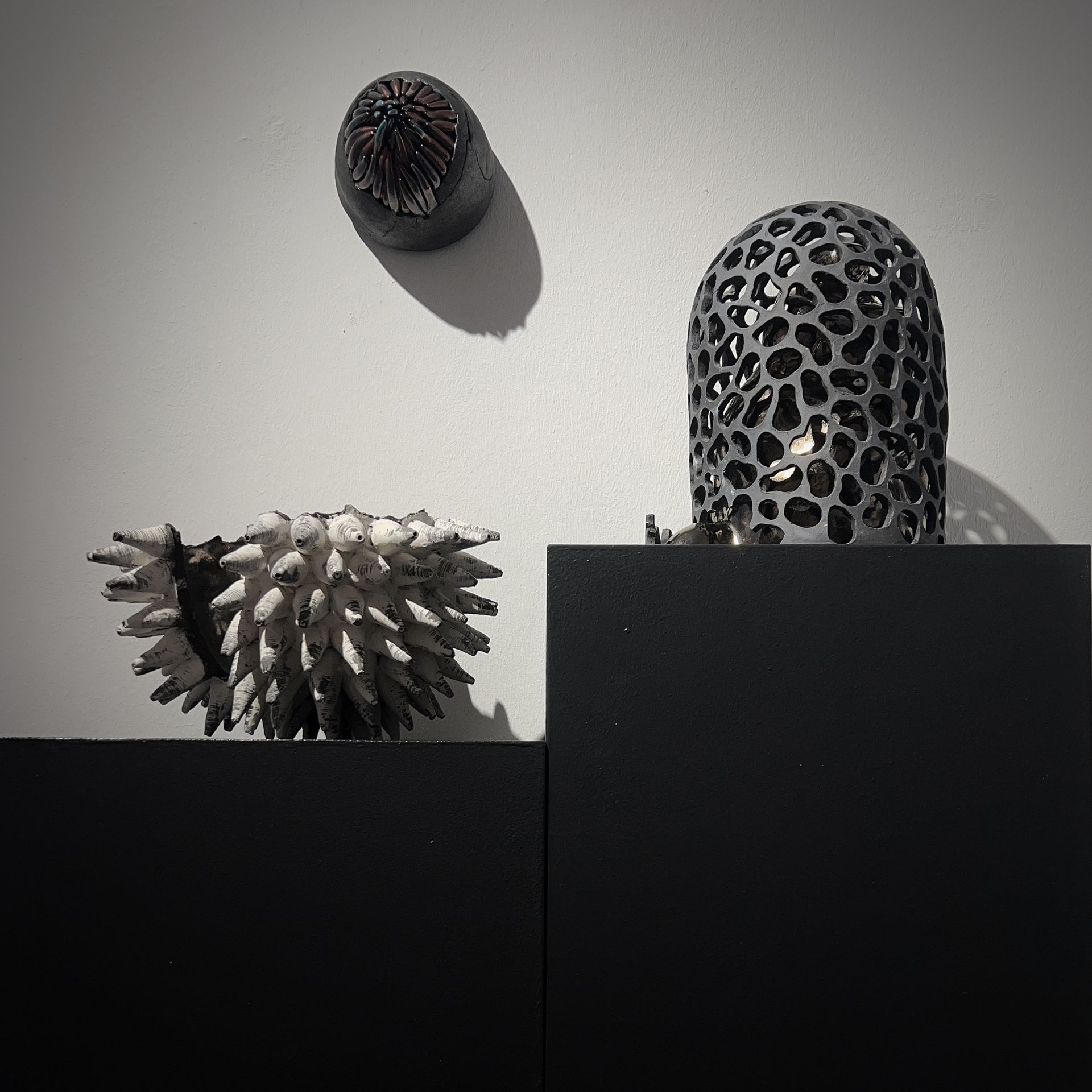 Einen anderen, beinahe entgegengesetzten Weg geht Renata Kolwicz. Als Bildhauerin arbeitet sie mit Keramik, einem Material, das Zeit, Hitze und Zufall in sich trägt. Ein Schwerpunkt liegt auf Skulpturen, die in der japanischen Raku-Technik entstanden sind. Ihre Formen erinnern an natürliche Wachstums- und Wandlungsprozesse, ohne sie abzubilden. Bewegung wird hier nicht gezeigt, sondern angehalten – als Momentaufnahme eines fortwährenden Geschehens, eingefroren im amorphen Körper der Skulptur.