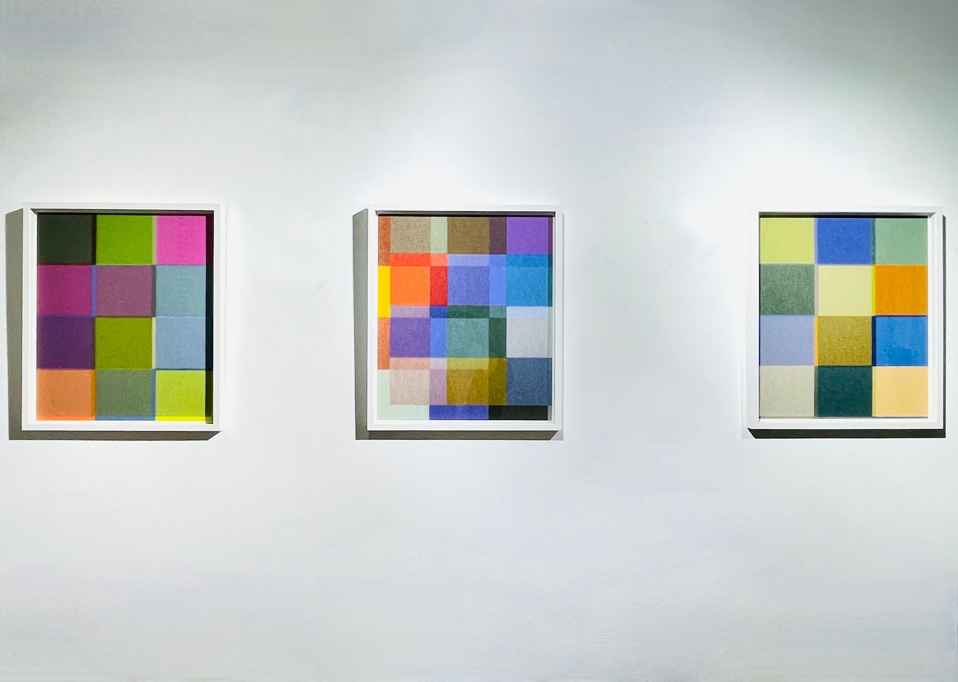 In the series of 'Composite Paintings', several differently painted color plates are combined to form a pictorial composition. The different distances from the wall emphasize the object character and the depth effect of the works.