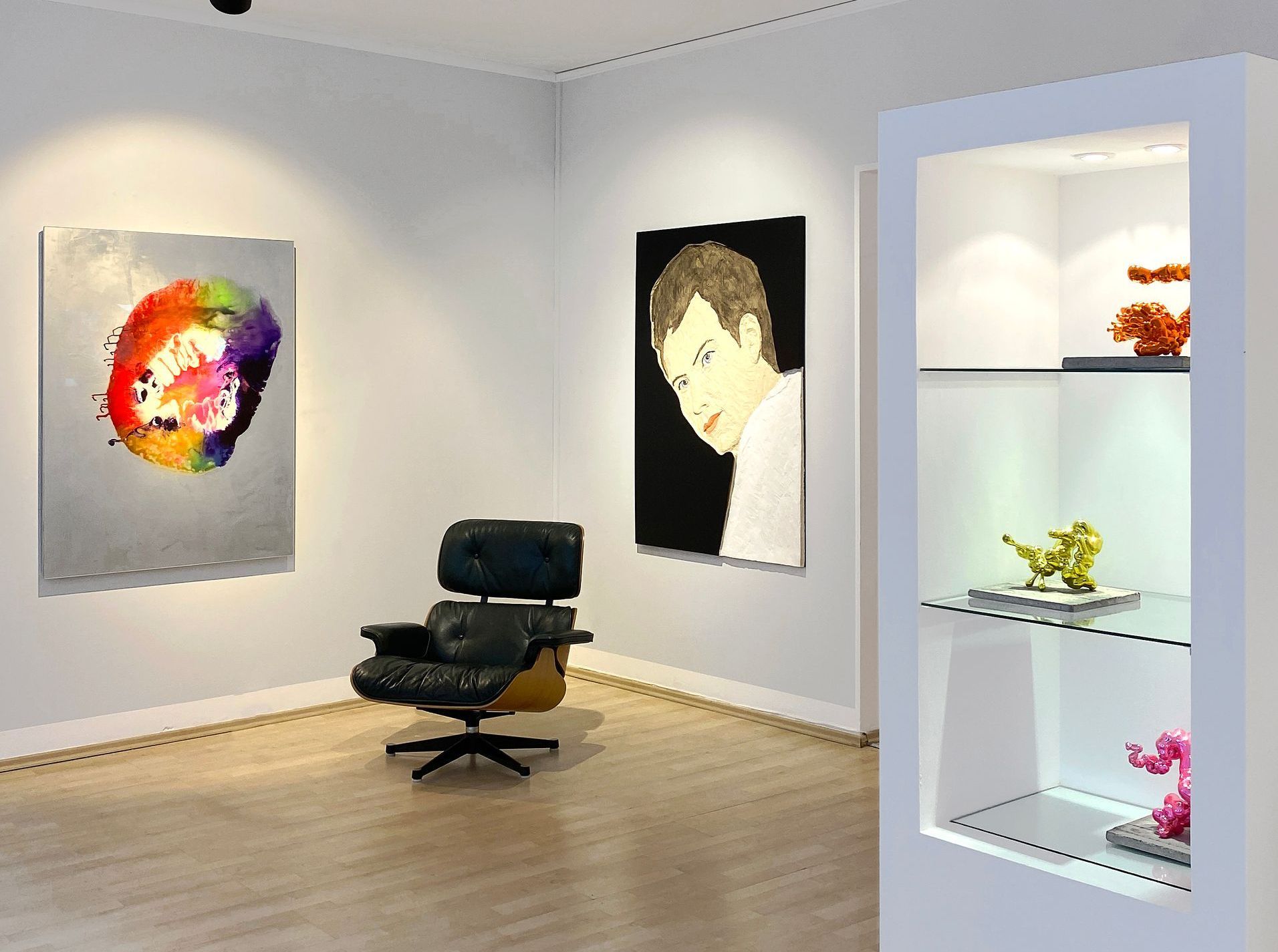 "Ulrike Buhl primarily comes from sculpture and installation. Ambivalent, constantly changing, mutating, Buhl's works are futuristic sculptural installations that depict a world in constant flux. Her works oscillate between beautiful and menacing, man- made and natural. On the one hand, the visual characteristics of the pieces automatically suggest something unnatural, man-made, and inorganic; Through the visual qualities of shimmering car paint and shiny surfaces, we are prepared for something wondrous and magical. On the other hand, the forms are biomorphic, natural and spontaneous, resembling magnified viral structures or microorganisms, symbolising the endless cycle of creation found in nature. The energy in the works is escalating and it feels like they will explode at any moment."