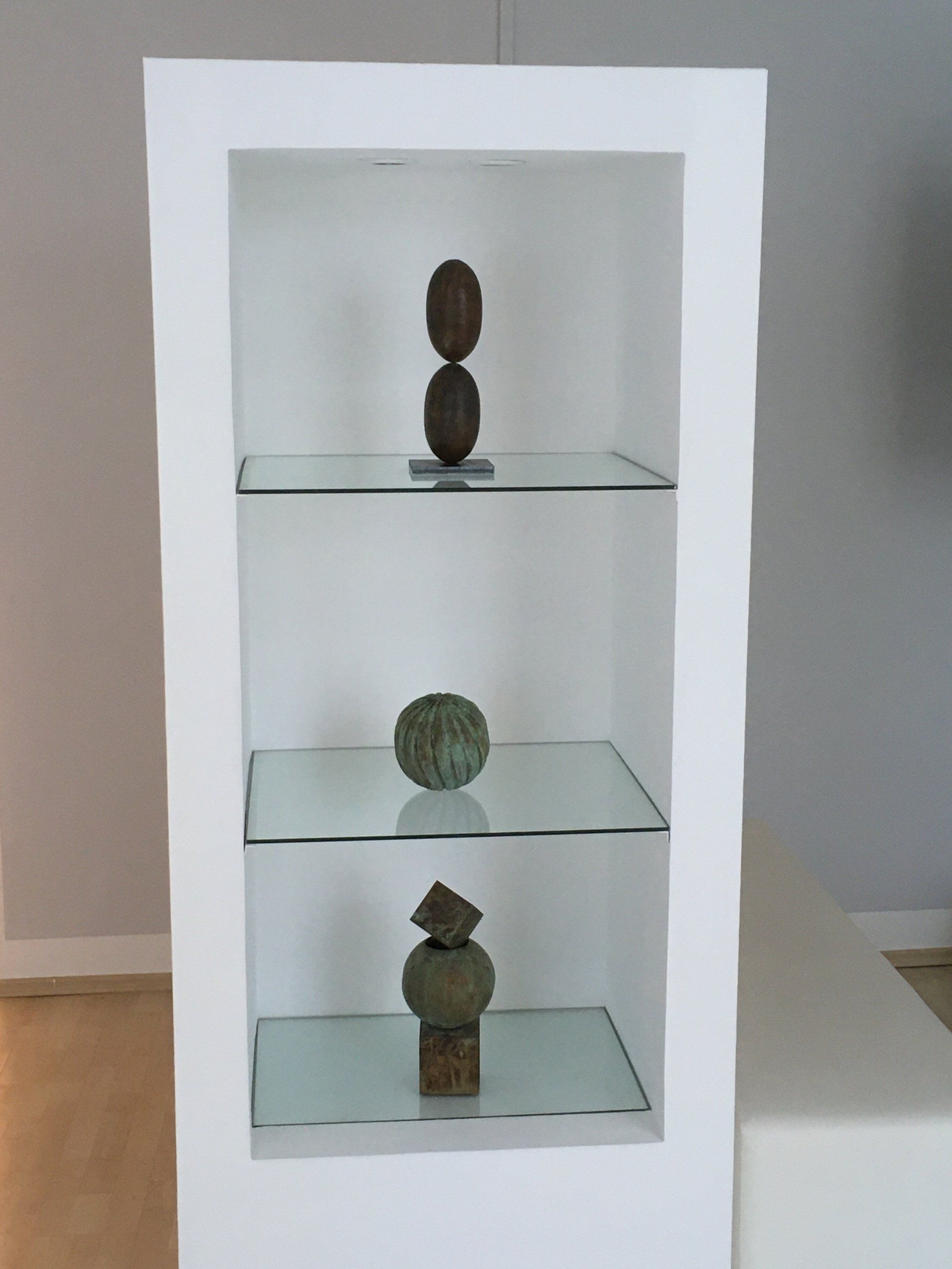 Neben imposanten Großformaten hat Ernst Hesse Skulpturen geschaffen, die im kleinen, ja winzigen, komprimierten Format bleiben. Sie trügen die Energie des ganzen Raumes in sich, sagt er, und so ist es auch. Als in sich strukturierte Rund- oder Tropfenformen erinnern sie manchmal an Früchte. Als Bronzen entwickeln sie ein reiches Spektrum schillernder Töne, aus Eisen mit der samtigen Textur tragen sie unmittelbar das Erdige kultischer Gegenstände.